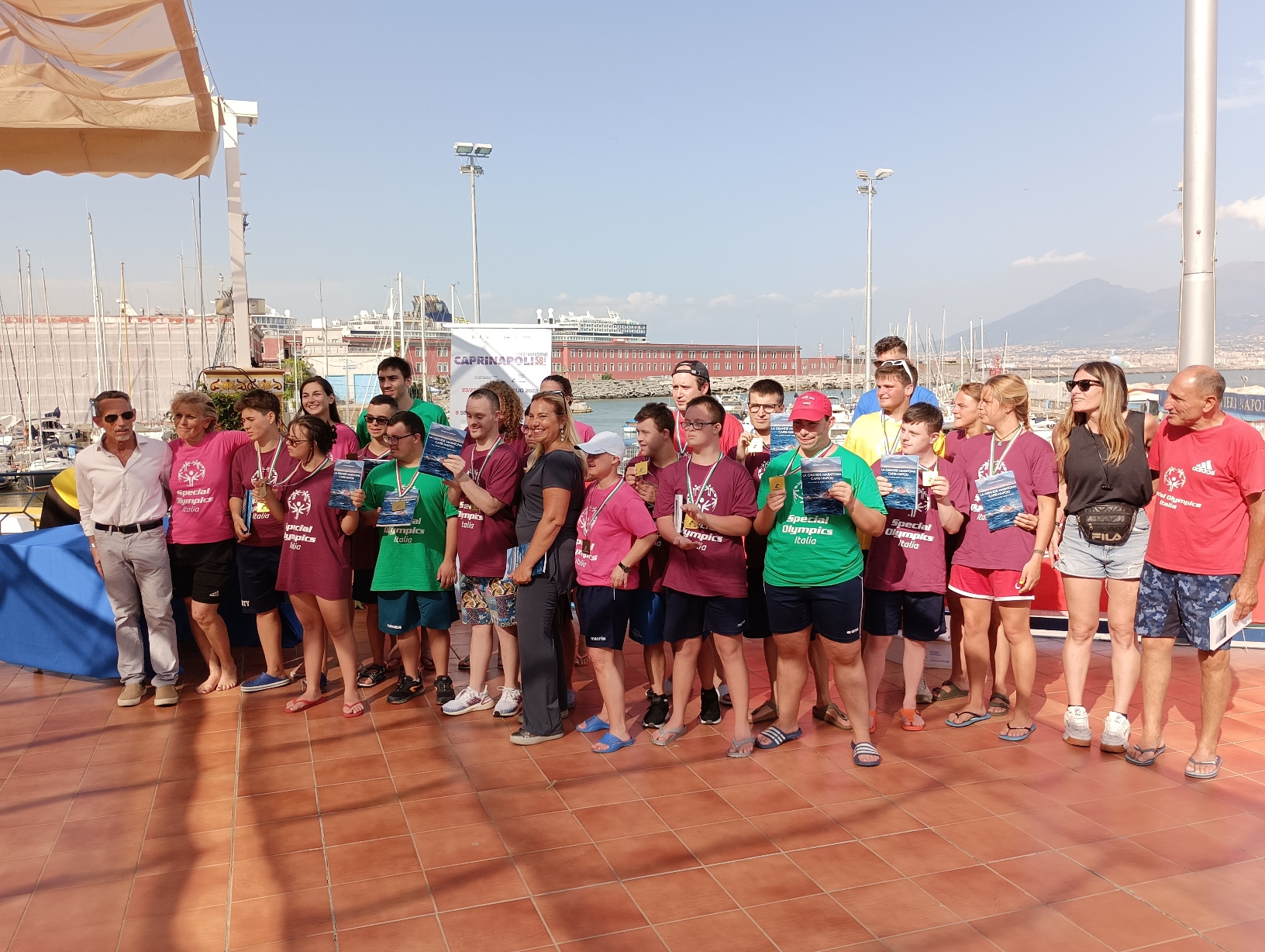 Hanno nuotato l’ultimo tratto della Capri-Napoli open, quello posto a ridosso del Circolo Canottieri Napoli. E una volta giunti sulla terra ferma, hanno fatto festa, partecipando con soddisfazione alla cerimonia di premiazione. Una giornata speciale quella vissuta venerdì 7 luglio da quindici atleti Special Olympics provenienti da sei diverse regioni italiani, che hanno preso parte alla terza e ultima prova open stagionale promossa dalla società Eventualmente Eventi & Comunicazione di Luciano Cotena, che ancora una volta ha voluto aprire la Maratona del Golfo ad esperienze di inclusione e socialità. Con loro un nutrito staff di responsabili, mentre ad applaudirli sulla terrazza del circolo c’erano i genitori. In acqua con loro anche atleti senza disabilità intellettivo-relazionali: “Si tratta di uno dei fondamenti del nostro movimento – spiega Lucia Zulberti, commissario tecnico nazionale – che porta i nostri ragazzi ad allenarsi e nuotare con altri atleti. È stata un’esperienza fantastica: abbiamo trascorso tre giorni in Campania, nuotando ma anche dedicandoci a vedere le tante bellezze della regione, chiudendo una stagione intensa ma ricca di soddisfazioni in totale allegria”.