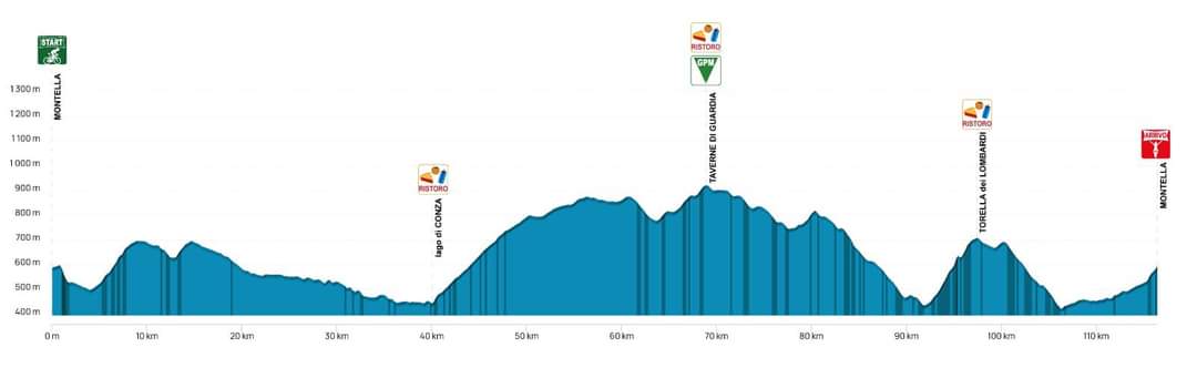 Diciotto i comuni attraversati: oltre Montella, la carovana passerà per Bagnoli Irpino, Nusco, Sant’Angelo dei Lombardi, Lioni, Marra de Sanctis, Conza della Campania, Andretta, Bisaccia, Guardia Lombardi (dove è posto l’unico granpremio della montagna, località Taverne di Guardia, a 972 metri sopra il livello del mare e a circa 70 km dalla partenza), Rocca San Felice, Sturno, Frigento, Gesualdo, Villamaina, Torella dei Lombardi, Castelfranci, Montemarano e Cassano Irpino.